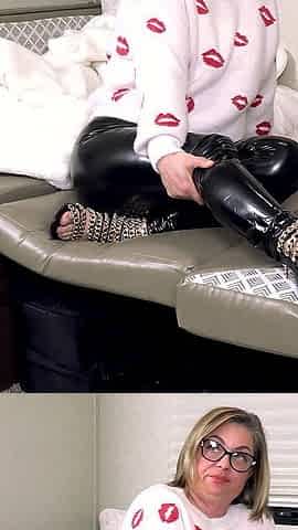 Strapon Femdom humiliation spanking foot job on male slave