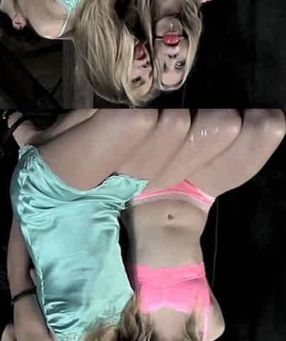 Blond lesbian dominatrix spanks her bound submissive babe