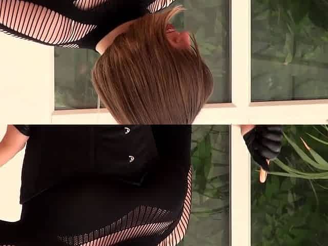 sexy Brunette hair in constricted leggings spanks nasty butt , this turns me on and makes my cunt moist