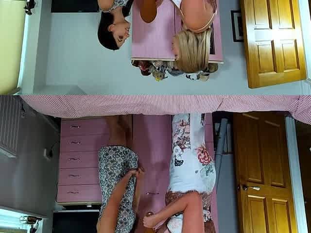 Brunette sorority teens wash brunette ass