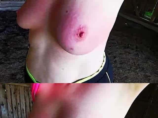 Slapping her red tits in the stable