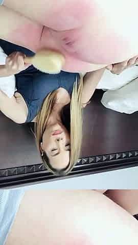 Naked Busty Girl Has to Do a Handstand While Being Slapped with a Wet Rag