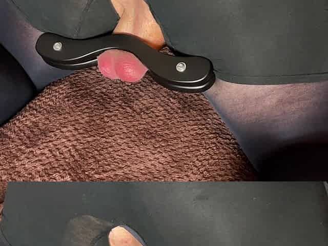 I spanks the balls of a fat slave, clamped in a humbler
