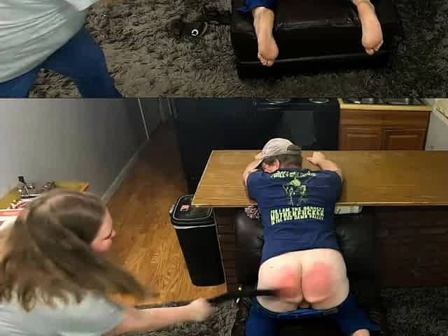 Naughty Teen Boy Belt-whipped by "Mom"