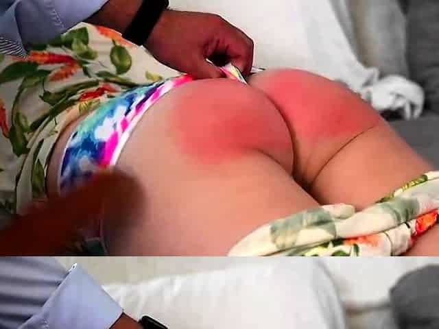 This babe Disturbs Dad and Gets Her Booty Spanked Hard for It