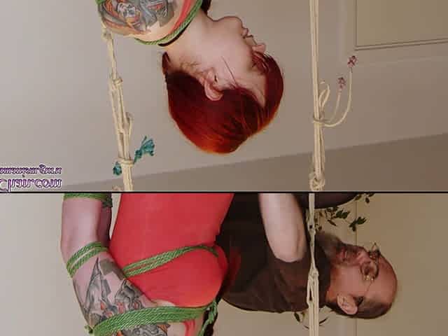 Redhead bondage slut caned and fucked before facial