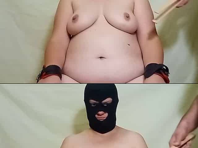 BDSM busty MILF feet spanked by master while tied up