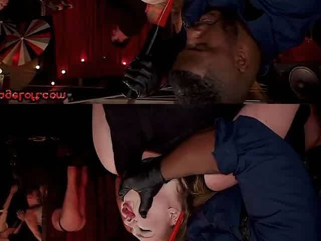 BDSM BBW lady gets electro session in group public sex