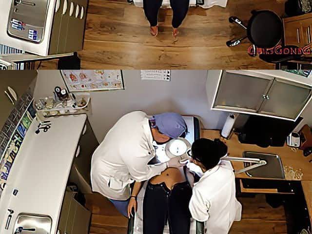 Sexy brunette babe examined by doctors