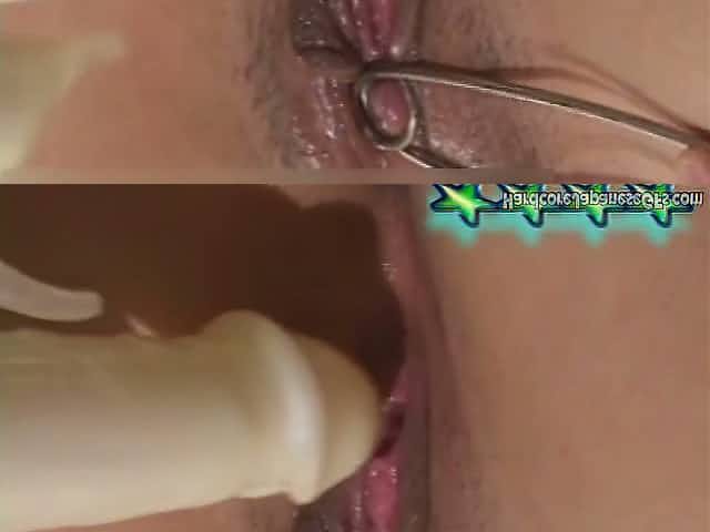 Loose pussy of a skanky Japanese chick plugged with speculum