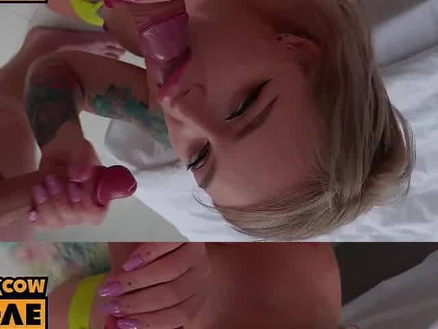"POV - Hot lingerie blonde Leah Meow in spit roast"