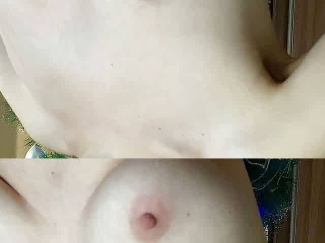 Hot Asian wife blowjob spit cum on tits and pregnant belly