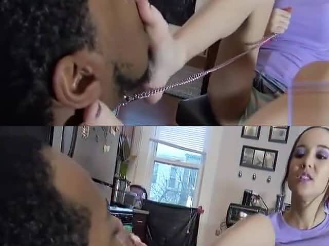 Petite asian girl and black guy: feet, spit