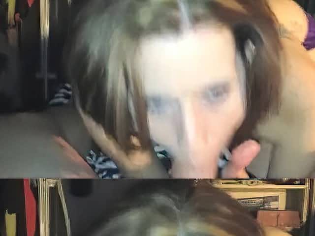 redhead sucks and fucks in the dressing room. Spit out cum on the floor.