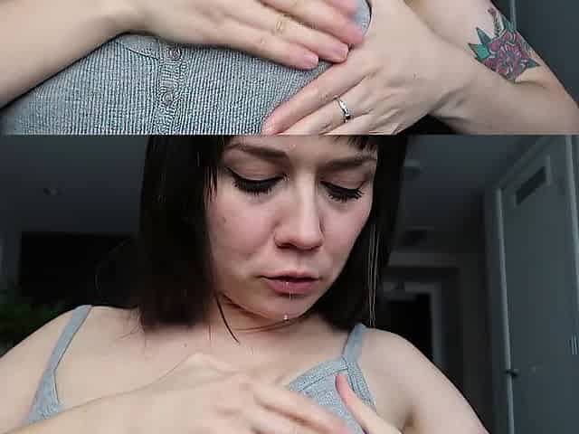 Lactating MILF Plays with Breast Milk Ice Cubes - Drooling Spit Play!