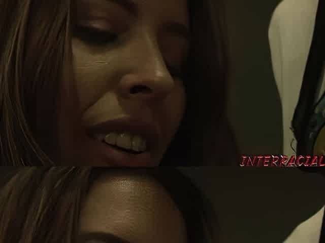 Marvelous white angel is getting spit- roasted during an interracial trio with 2 ebony lads