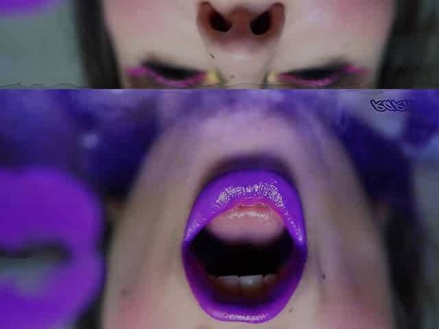 Hottest Goth Girl Kisses with Plump Purple Lips and Spit Fetish