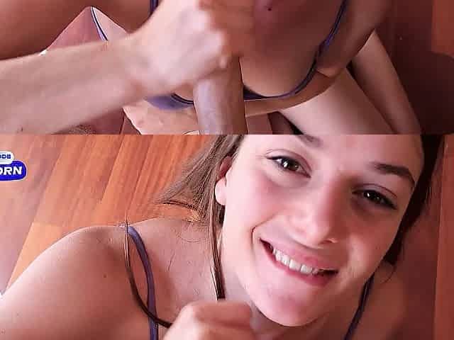 POV Deepthroat and Fast Tugjob Ends in Giant Facial - KLX