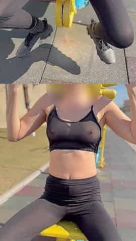 Ebony Cutie In Spandex Milks Knob At The Gym