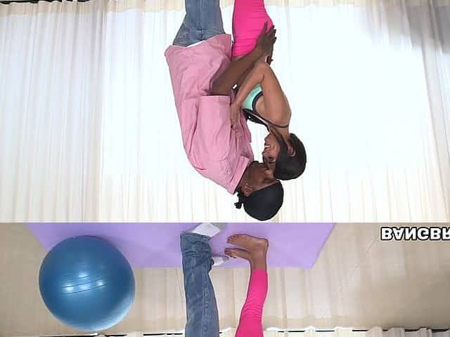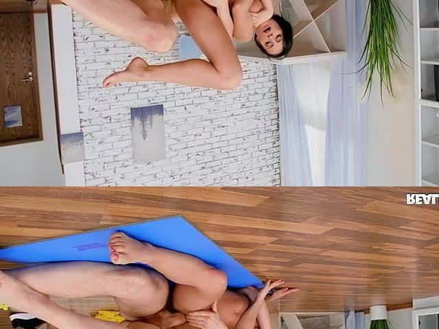 Pervert yoga tutor screws brunette hair in her butt from behind