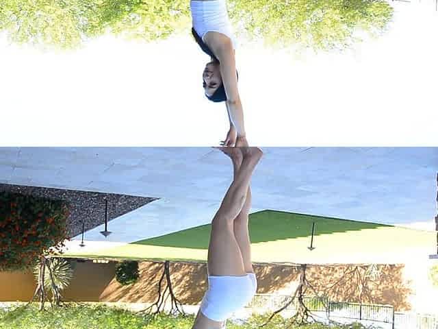 Watch flexible Isabel working out and showing her shaved pussy