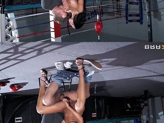 Erica Fontes & Jordan Ash in Naughty Athletics, Erica is training to do some sparring in the ring, but her trainer doesn't think
