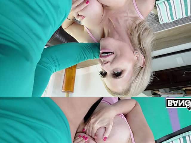 Shaved pussy blondie Aria Logan enjoys getting fucked during yoga