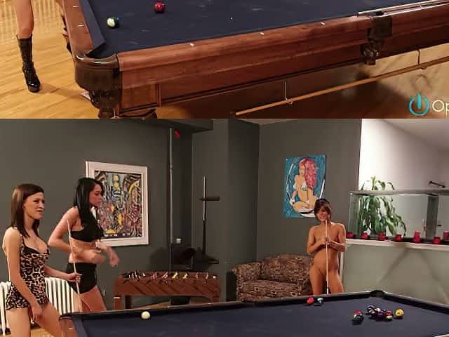Bunch of hot black haired lesbians have steamy 4 some in billiard club