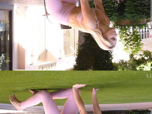 Flexible solo blonde model Nikki stretches out outdoors in thights