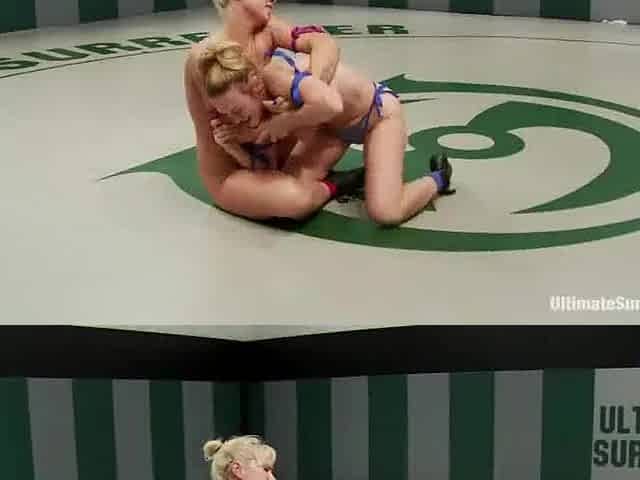 Two blondes wrestle on tatami and make lesbian love afterwards