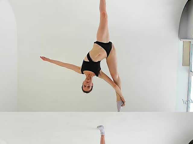 Sexy, gymnast nymph is having lovemaking while doing her spreading routine, to spice it up