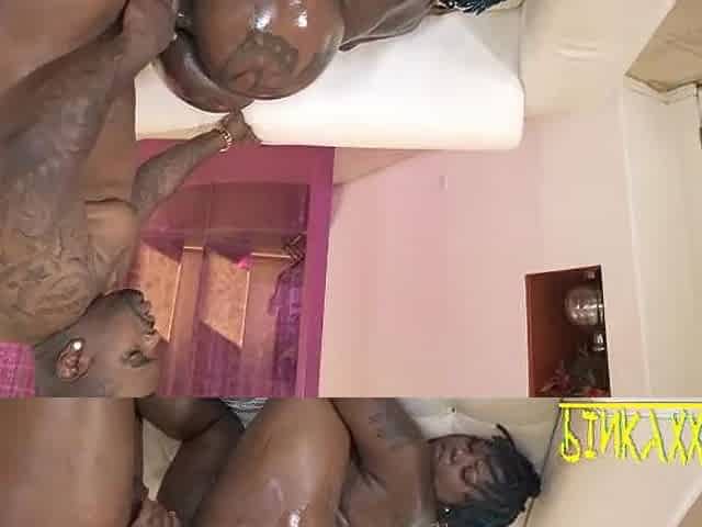 Ebony beauty Honeybun shows off her wide open pussy and ass