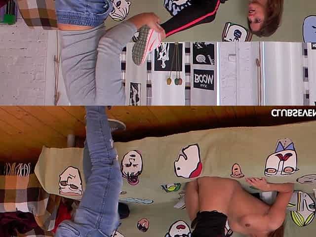 Flexbile Russian teen Calibri spreads her long legs to be fucked