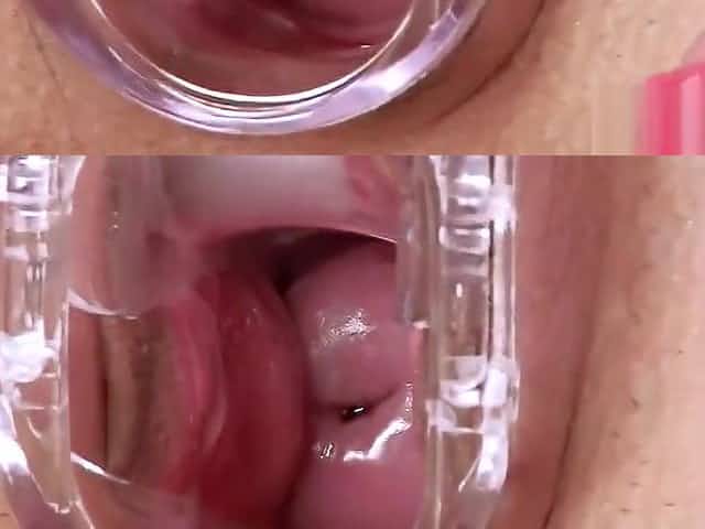 Exquisite beauty is popping out her spread tight twat in closeup