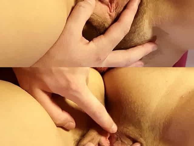 Getting hands-on with a young, hairy pussy - wide open and ready for some fun