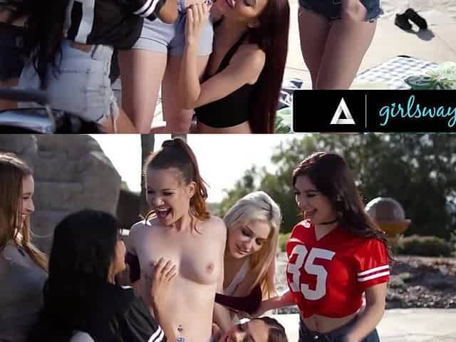 "GIRLSWAY - Sorority Girls' Wild OUTDOOR ORGY During Spring Break With Sexy Skye Blue & Laney Grey"