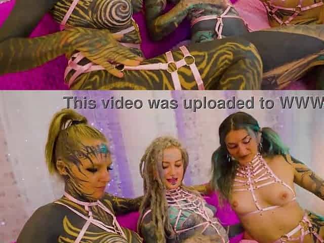 three Heavily Tattooed cuties, two lads - BBC & White Ramrod Fuckfest Mayhem