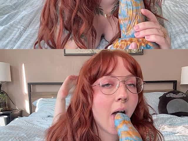 Tattooed sweetheart wrecks her snatch with a massive Bad Dragon