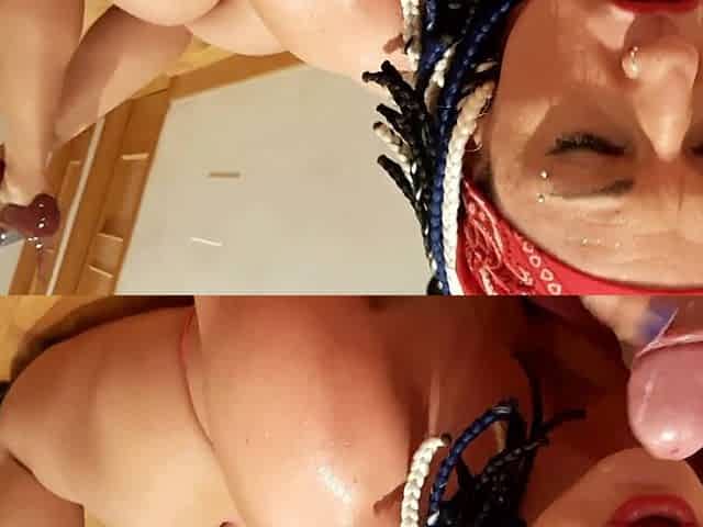 Eager angel discharges squirt and catches drops with her throat HD
