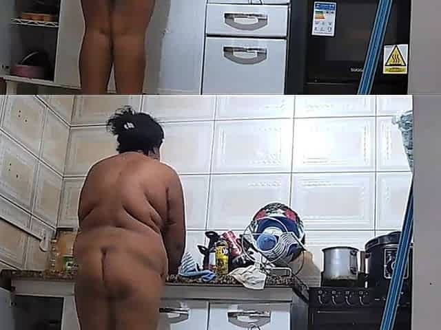 Camera Catches Hot Neighbor Cleaning the House and Showing Her Big Pussy
