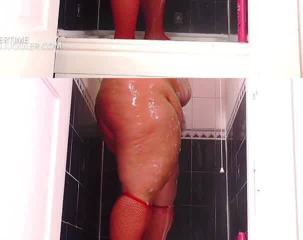 Big ass horny SSBBW blonde milf taking shower & big booty fucked doggystyle