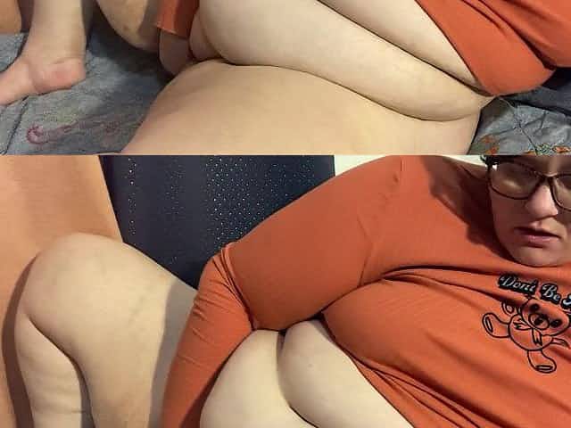 SSBBW Cortigian: Chunky mamma shows large abdomen and masturbates untill moist climax