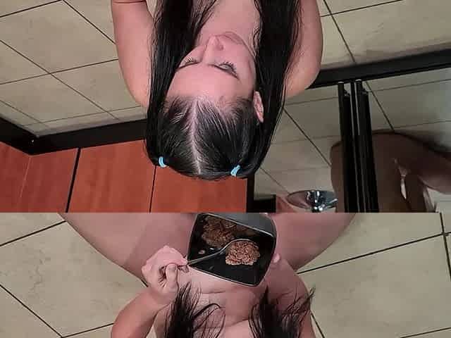 Pigtailed Chubby Slut Eating Piss Covered Cereal
