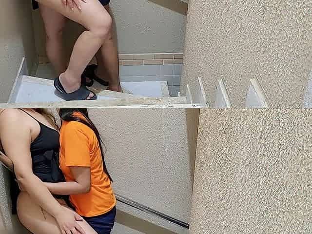 Video of horny Renae Cruz and Melania having sex on the stairs
