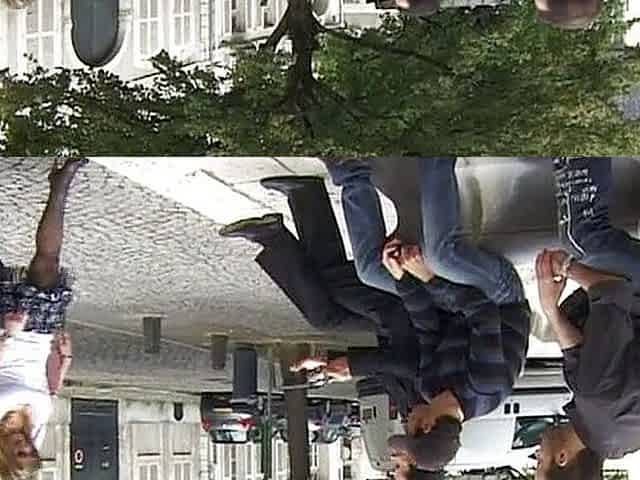 Reverse gangbang amateur BJ sluts ass fucked on stairs