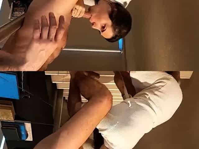 NylonFeetLine Clip Gertie and Tobias A, Dirty blonde Gloria in her sleek smooth nylons goes to work on lucky Tobias to get him t
