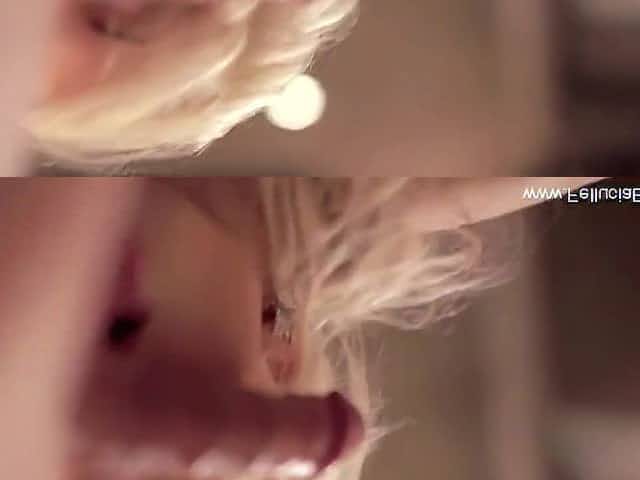 Sexy blondie Alix gargles with a large schlong on the stairs
