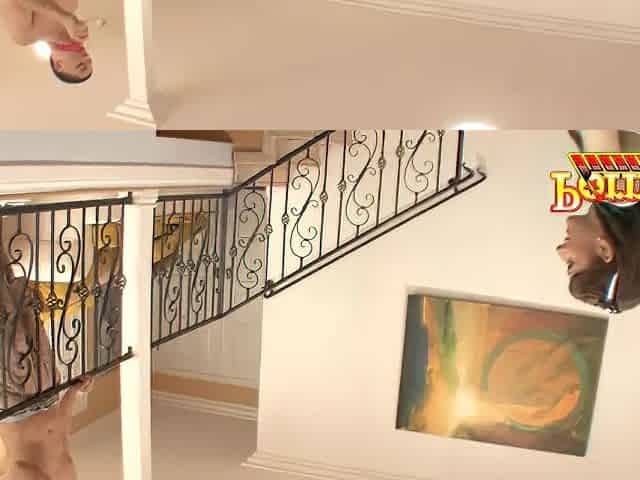 Adriana Chechik fucked by her brother stiff boner on the stairs doggystyle