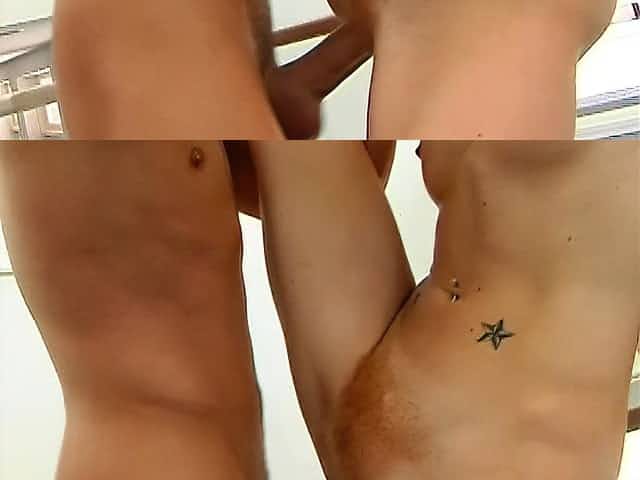 The voyeur watches these sluts gets banged in the butt on the stairs