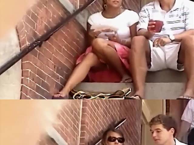 Sexy lady walks the stairs followed by an upskirt chaser